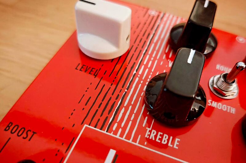 The JCR offers great overdrive versatility with its “Smooth” and “Rough” switch. In “Smooth” mode, it offers a Fender Blackface sound, switching from a transparent boost to a bluesy crunch. In “Rough” mode, a modified Marshallian distortion stage enriches the circuit, offering saturated tones with marked compression and rich harmonics. In addition to the overdrive channel inherited from the Jeanne, the JCR features a clean boost adapted to Jean-Claude Rapin’s playing.